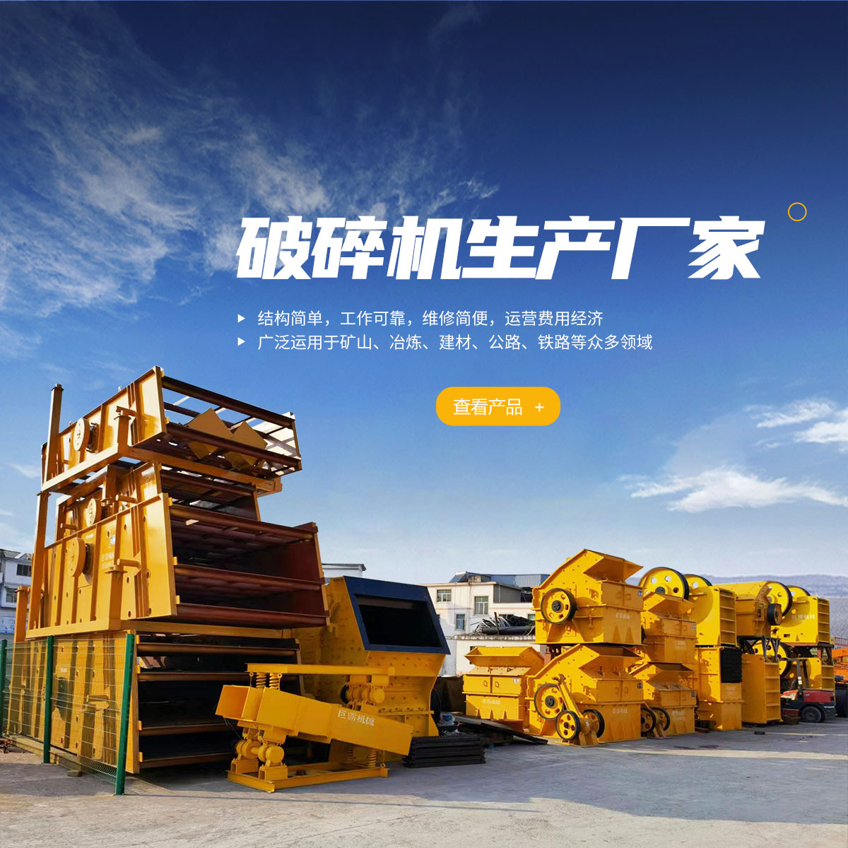 主要產(chǎn)品有:移動式破碎站、礦用制砂機、破碎機、礦砂設(shè)備、混凝土攪拌站等產(chǎn)品